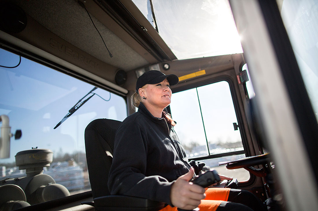 – Allting är inbyggt nu. Det är ljusbommar överallt. Du kan inte stoppa in en hand utan att maskinerna stänger av. Vi har ett helt annat säkerhetstänk, berättar Jessica Heikkilä som i dag är truckförare på sågverket.