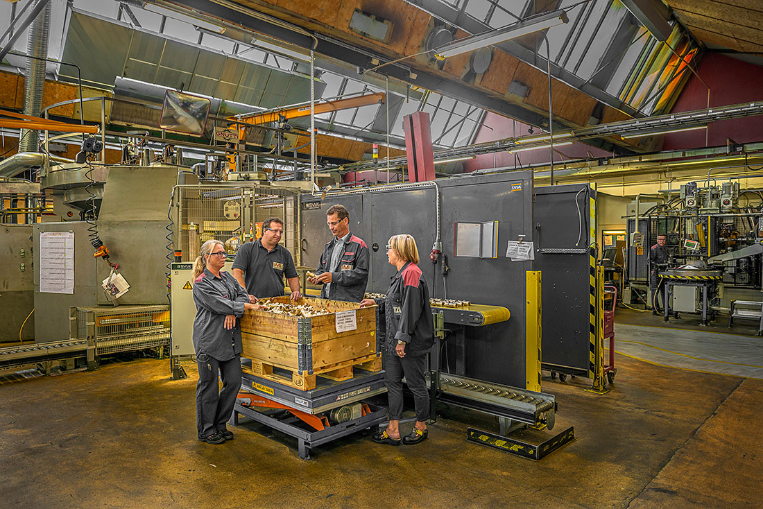 I dag används inhyrning bara vid arbetstoppar. De inhyrda går in på enklare arbeten i en tillverkning som förenklats och standardiserats. 100 anställda gör i dag mer än vad 180 gjorde för några år sedan.