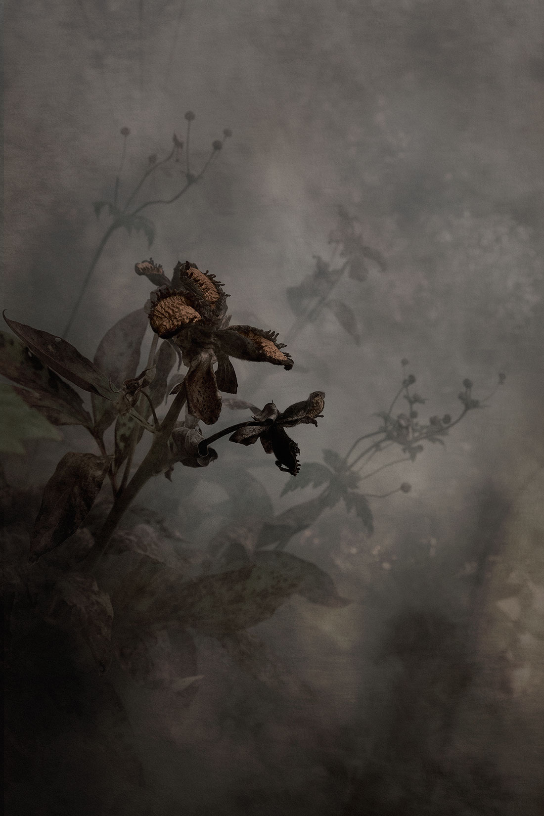 Trädgården blir en krigsskådeplats, ett slagfält. Men den är också en plats som erinrar om ett annat slags skönhet. Frön, embryonala stadier eller extrema förfallsstadier som vissnande och förruttnelse, brukar ju sällan visas i flora och trädgårdsböcker fast de är lika typiska för växten, som blomprakt och utslagna blad. Varför? Beror det på människors rädsla för döden, den som gör att vi missar dess ljusa löfte? Mitt i förgängelsen frodas ju hoppet och framtiden.