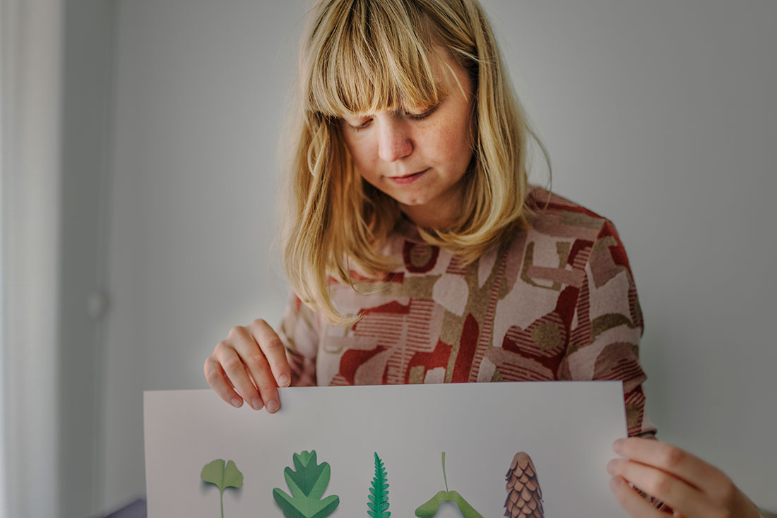 November, men det är nästan som man får en föraning om våren. Fideli Sundqvist tar fram en penna och ett grönt papper och skissar snabbt upp några linjer, sedan byter hon pennan mot en skalpell för att därefter skära och vecka papperet tills hon bara minuten senare lyckats förvandla det till ett naturtroget löv.