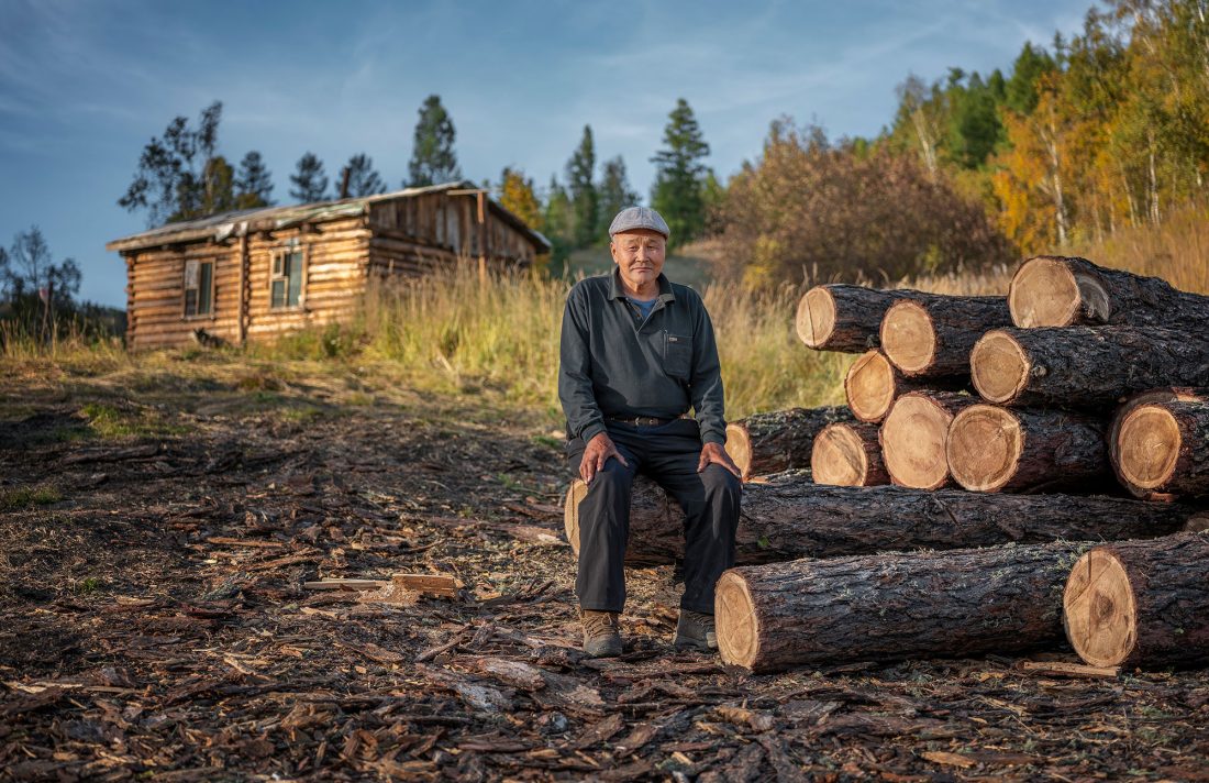 Mitt hus har jag byggt själv av timmer från skogen. Det tog två veckor att sätta upp. Jag har ingen el, utan går till grannen åtta kilometer bort för att ladda telefonen ibland. Förut hade jag två hästar, men vargarna tog dem. Det är gott om varg här, men jag är inte rädd. Ibland sover jag i skogen, där anfaller de inte. Men att somna på ett öppet fält skulle vara farligt.