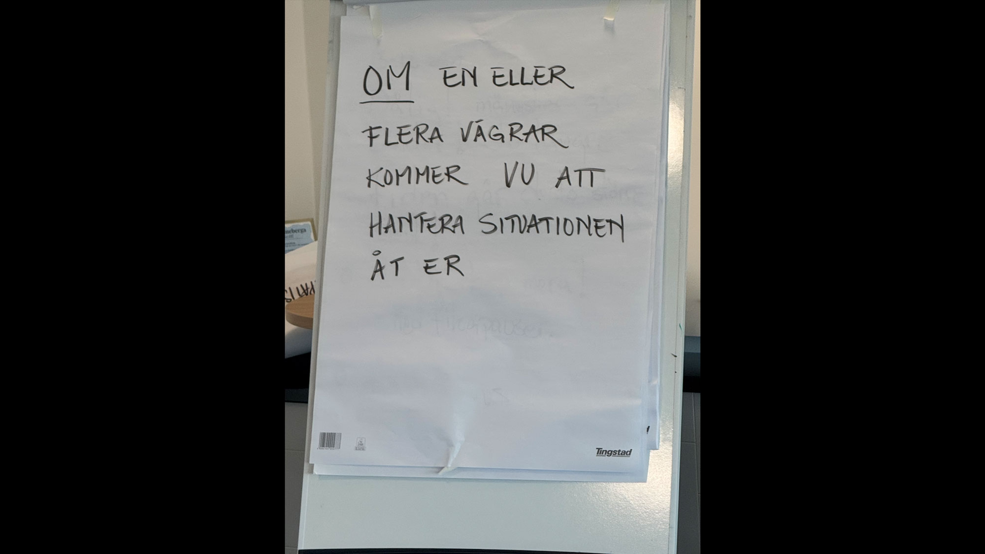 Om man inte ville delta i övningen, då kunde man läsa vad som gällde på konferensställets A1-stora blädderblockspapper intill: