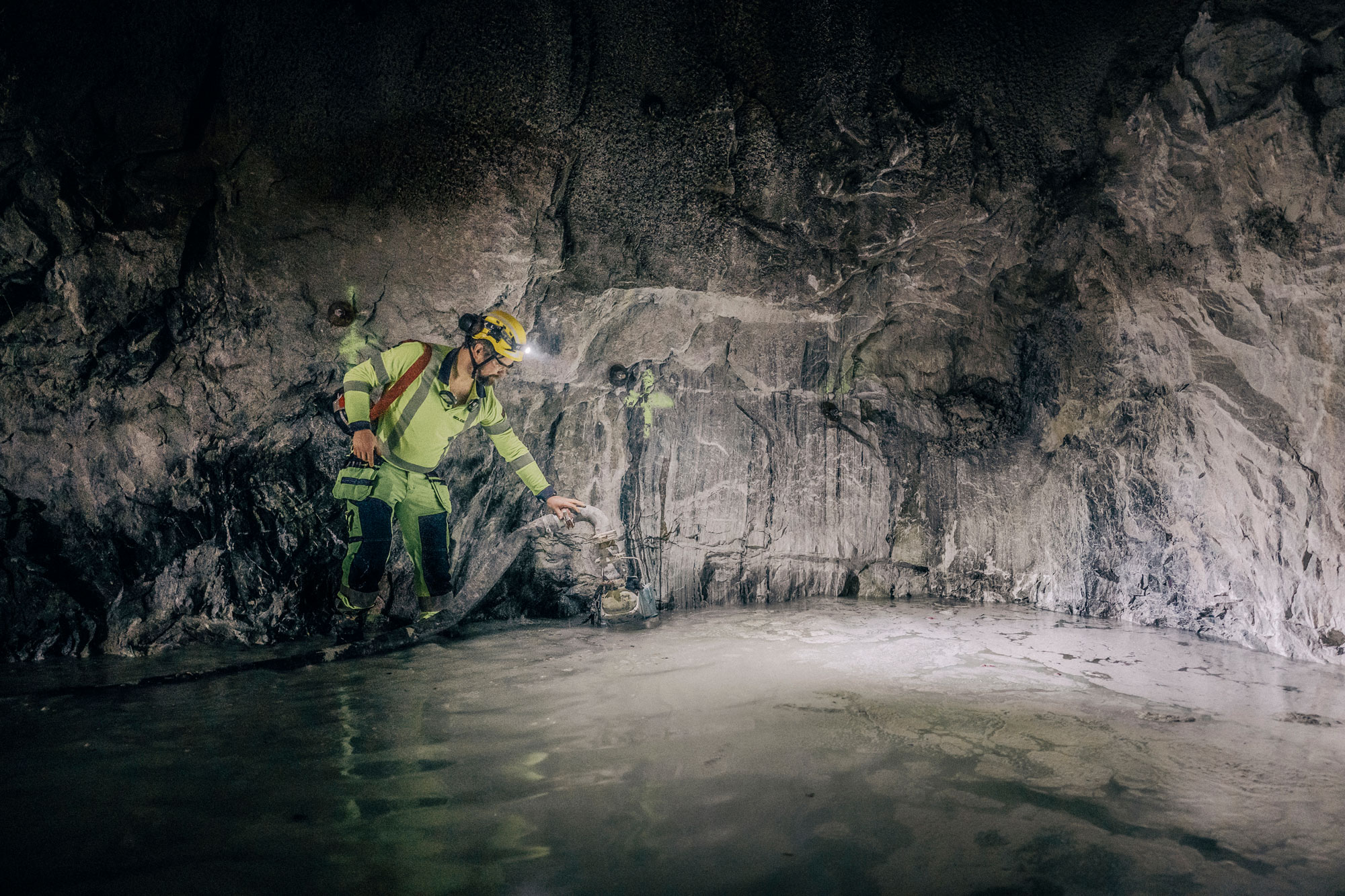 Vattnet pumpas upp mot ytan i omgångar – från en pump till en annan i ett slags stafettpumpning – för att trycket inte ska bli för högt och pumparna ska orka. Skulle de plötsligt sluta fungera måste gruvan utrymmas.